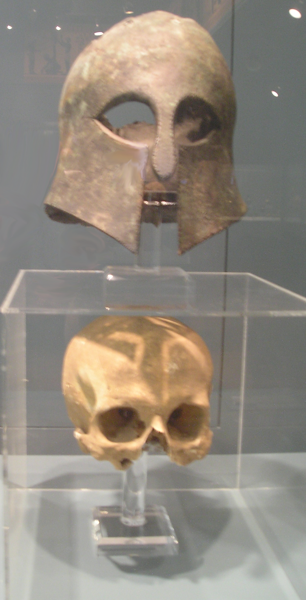 Bitwa pod Maratonem – starcie Greków z Persami Published 30 stycznia, 2016 at 1024 × 2005 in Bitwa pod Maratonem – starcie Greków z Persami Hełm (styl koryncki) oraz czaszka, prawdopodobnie znaleziona w środku, z Bitwy pod Maratonem. Obecnie znajduje się w Królewskim Muzeum Ontario, Toronto